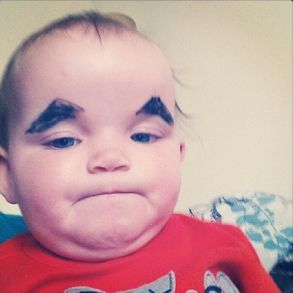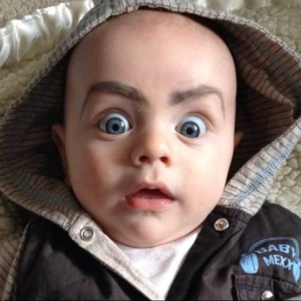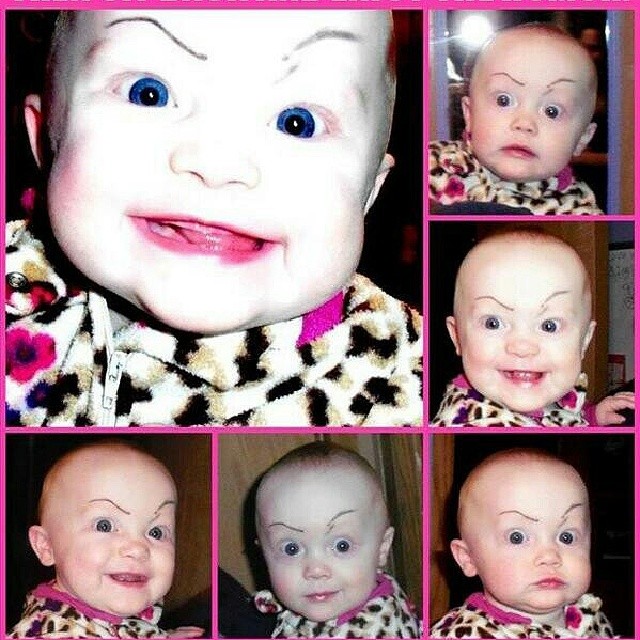 These babies have their family members adding them eyebrows like its always been there, making them look either funny of very scarey…
